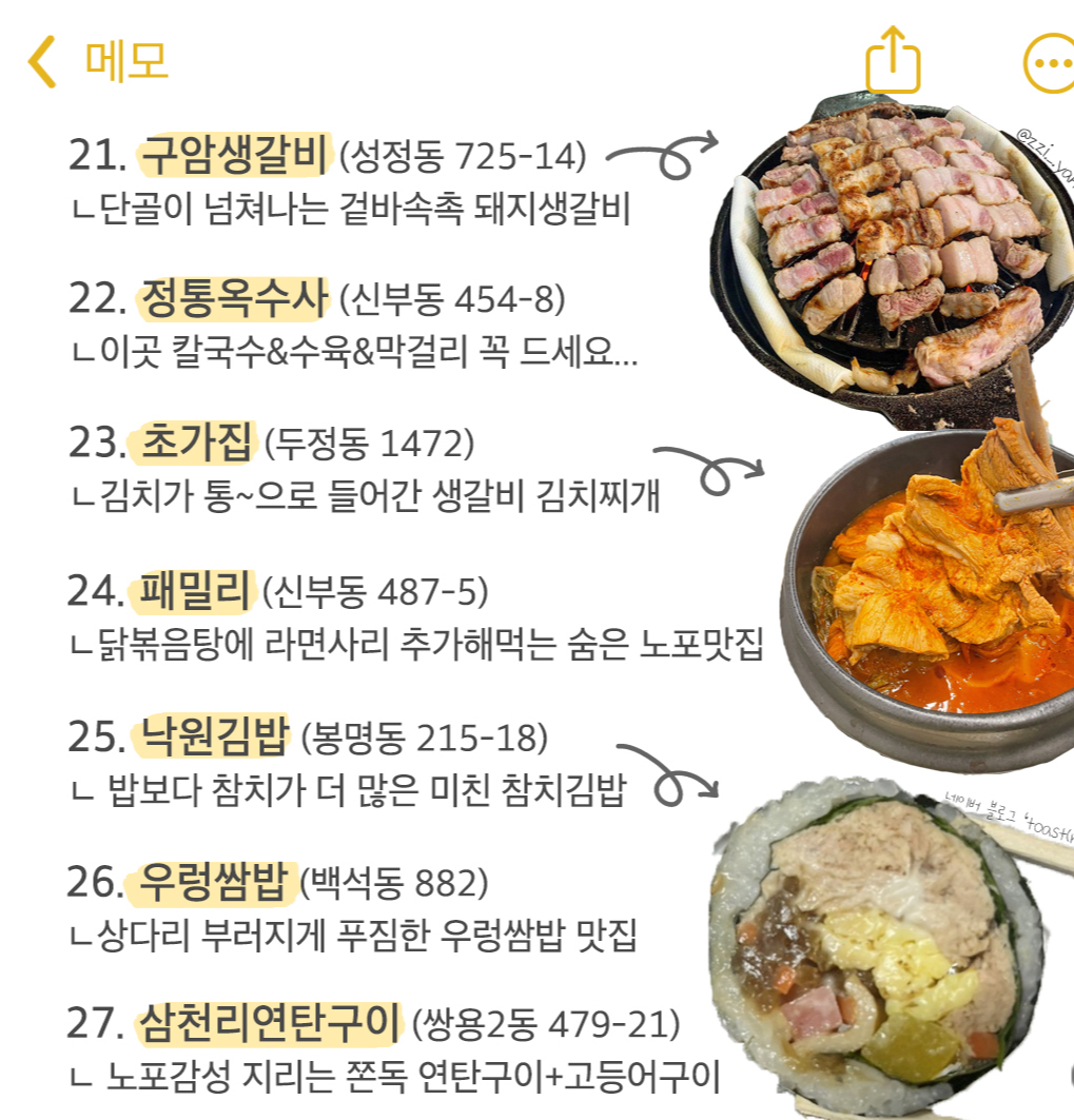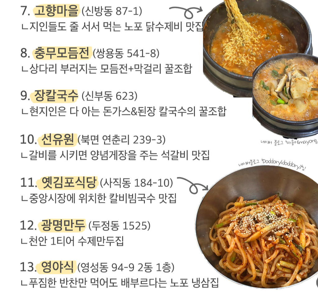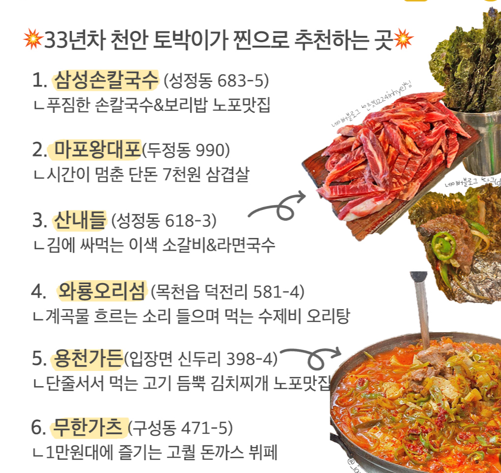 가족들과 연인들과 천안 구경가서 맛잇는 식사하세요