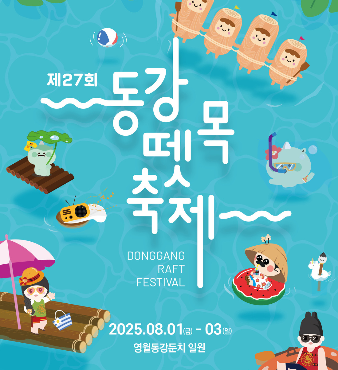 - 2025년 제27회 동강뗏목축제는 **8월 1일(금)부터 3일(일)**까지 강원도 영월군 동강 둔치 일원에서 개최됩니다