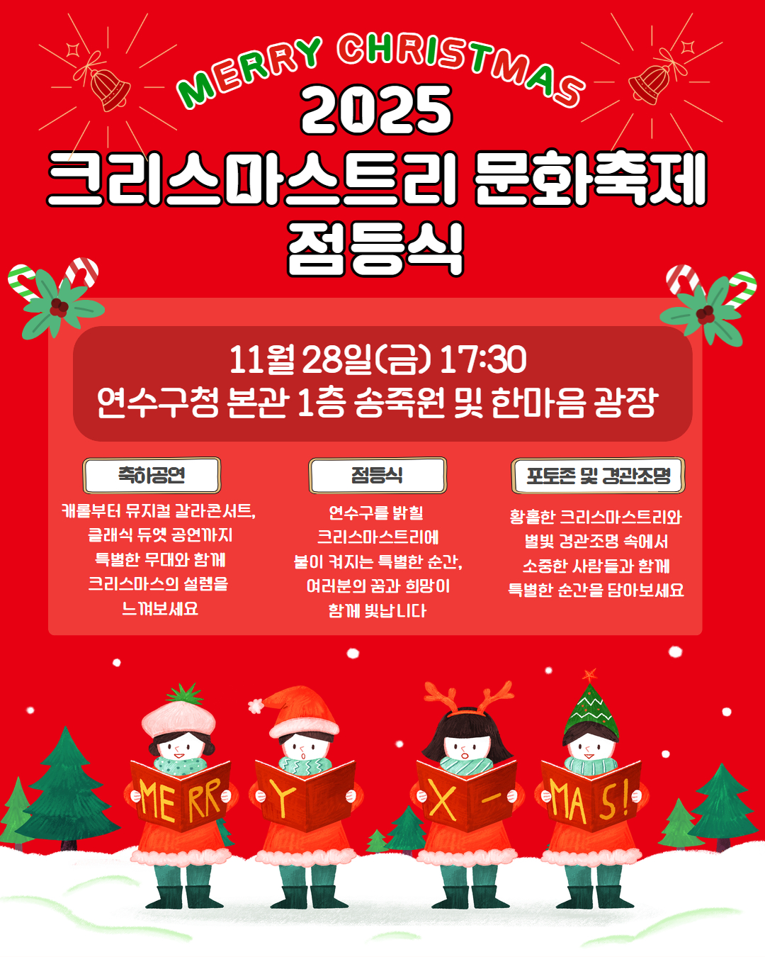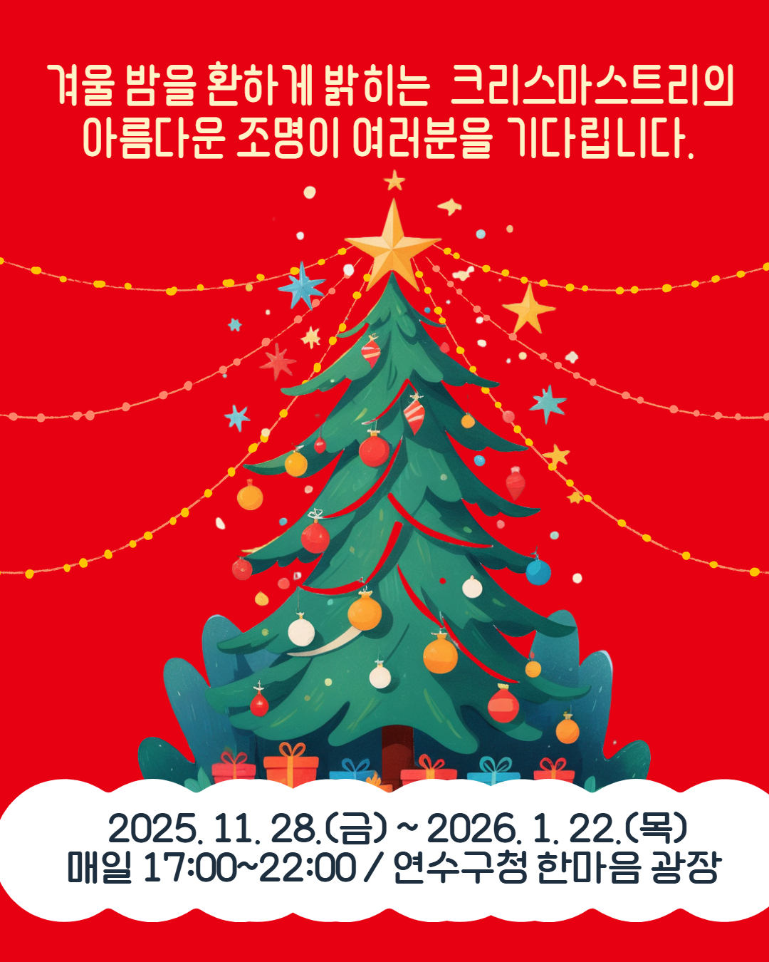 아래는 인천광역시 연수구에서 열리는 2025년 크리스마스트리 문화축제의 주요 정보입니다.