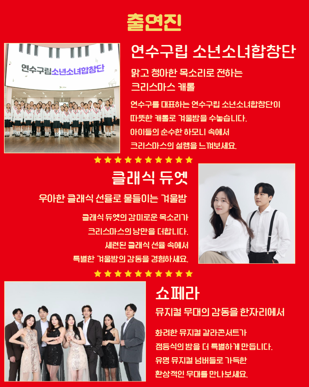 - 대중교통 및 주차 정보: 구청 부근 주차시설이 있으나, 행사 기간 밤 시간대에는 혼잡할 수 있으므로 대중교통 이용을 추천.