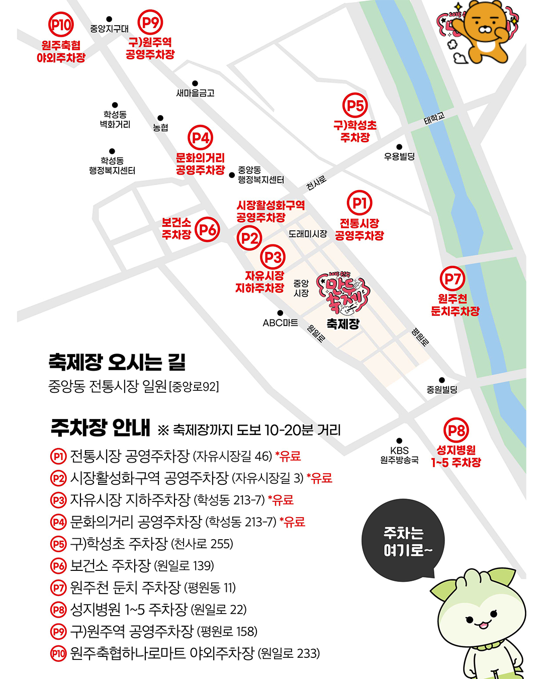 - 장소: 강원도 원주시 중앙동 전통시장, 문화의 거리, 원일로 일대