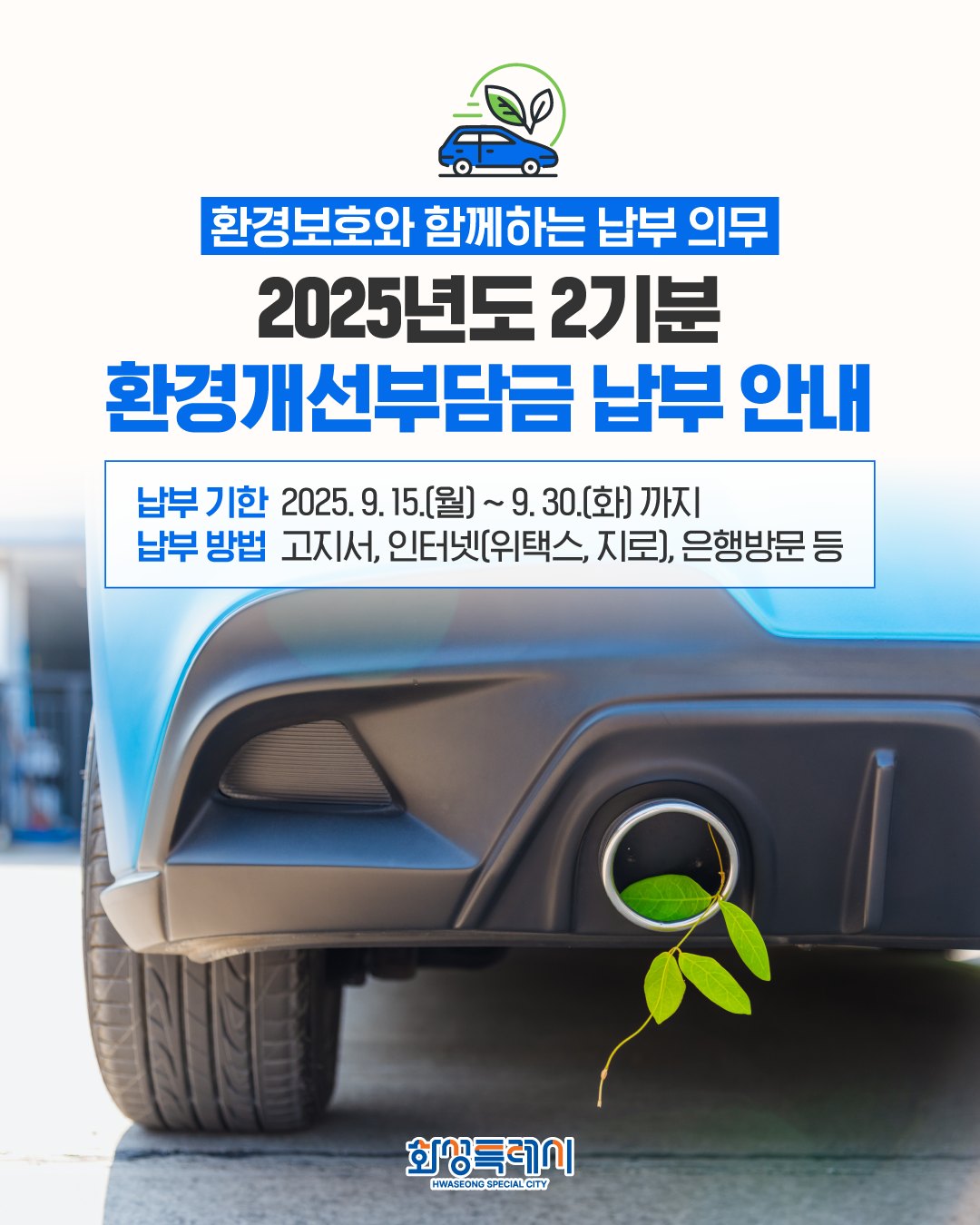 화성특례시(경기도 화성시) 기준으로 2025년 제2기분 환경개선부담금 납부 안내드립니다.