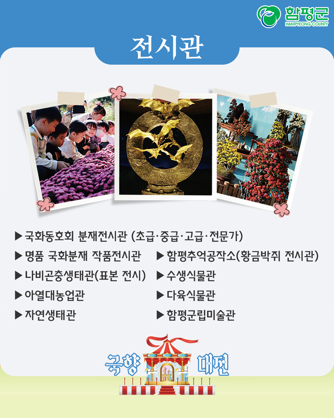 - 명품 국화 분재 전시 — 고급 원예 작품 전시도 포함됨