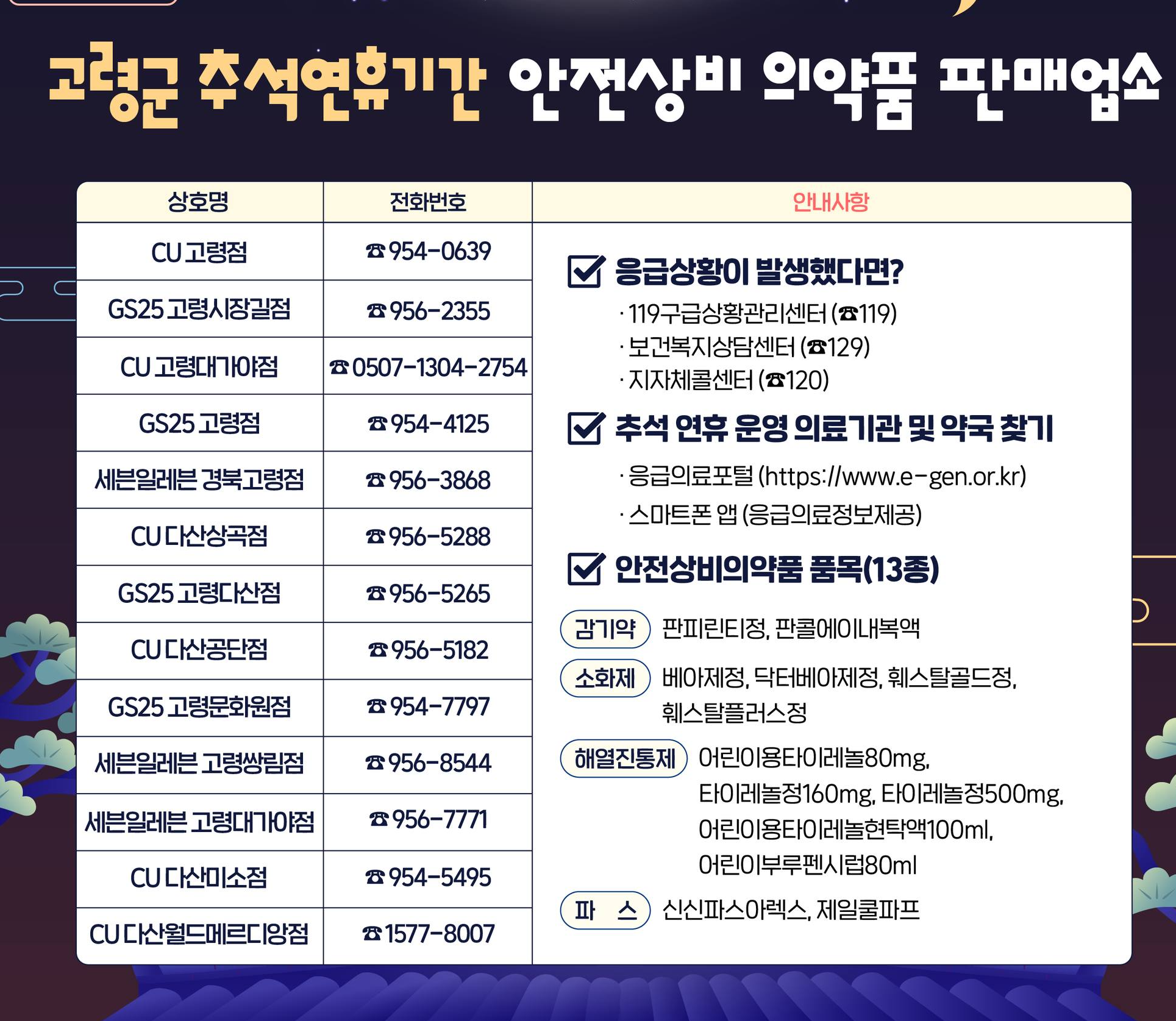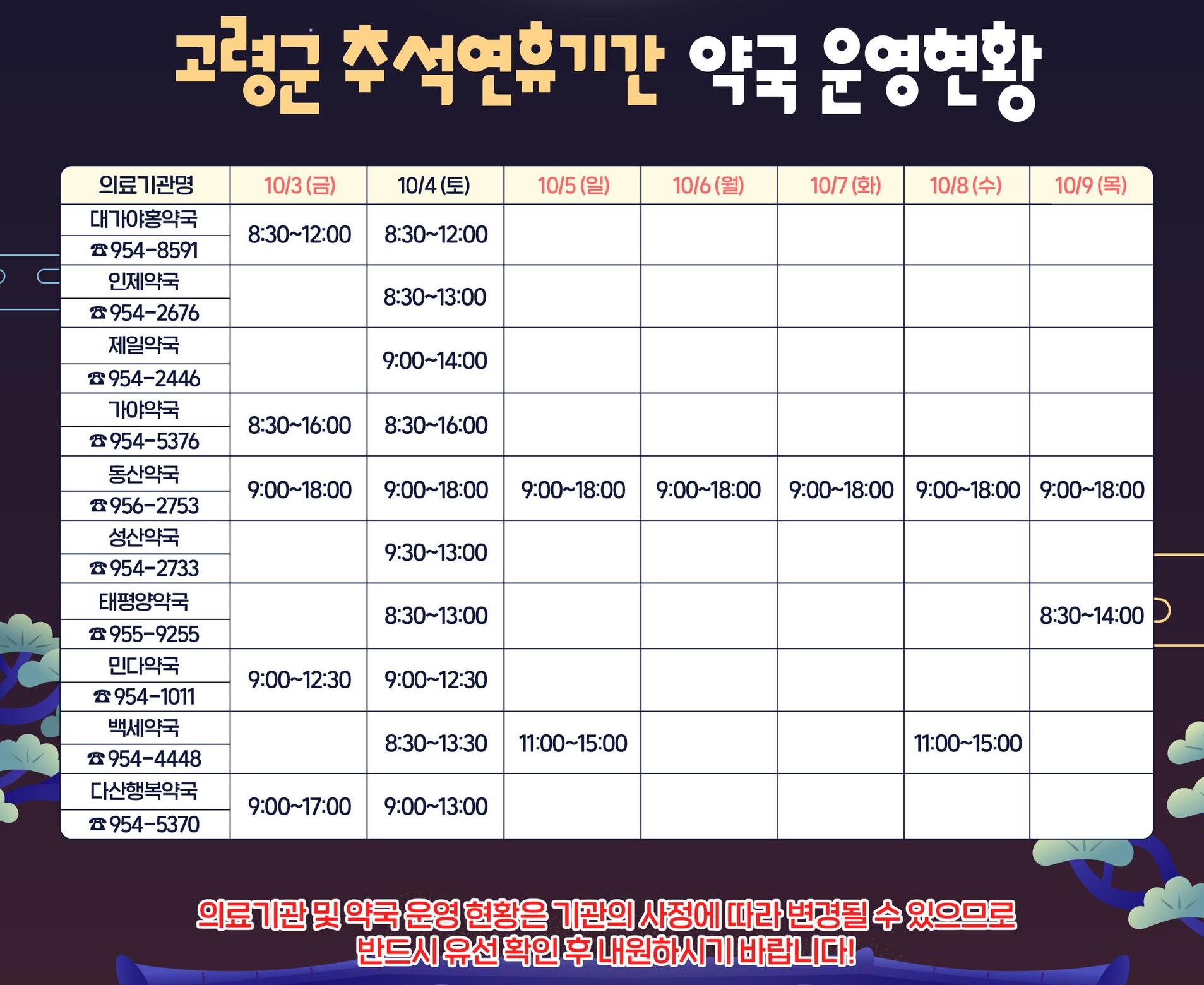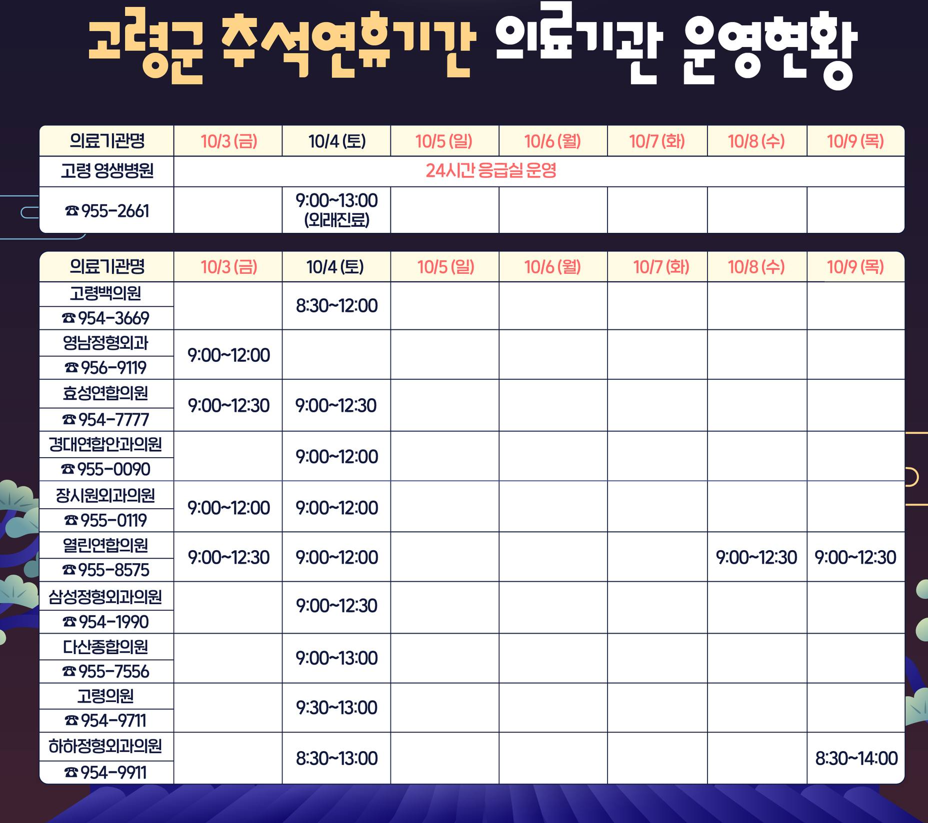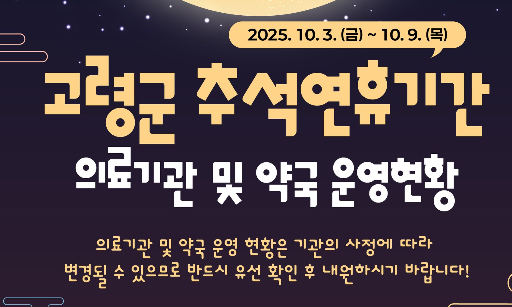 2025년 추석 연휴 기간 동안 고령군 의료기관 & 약국 운영현황을 안내드립니다