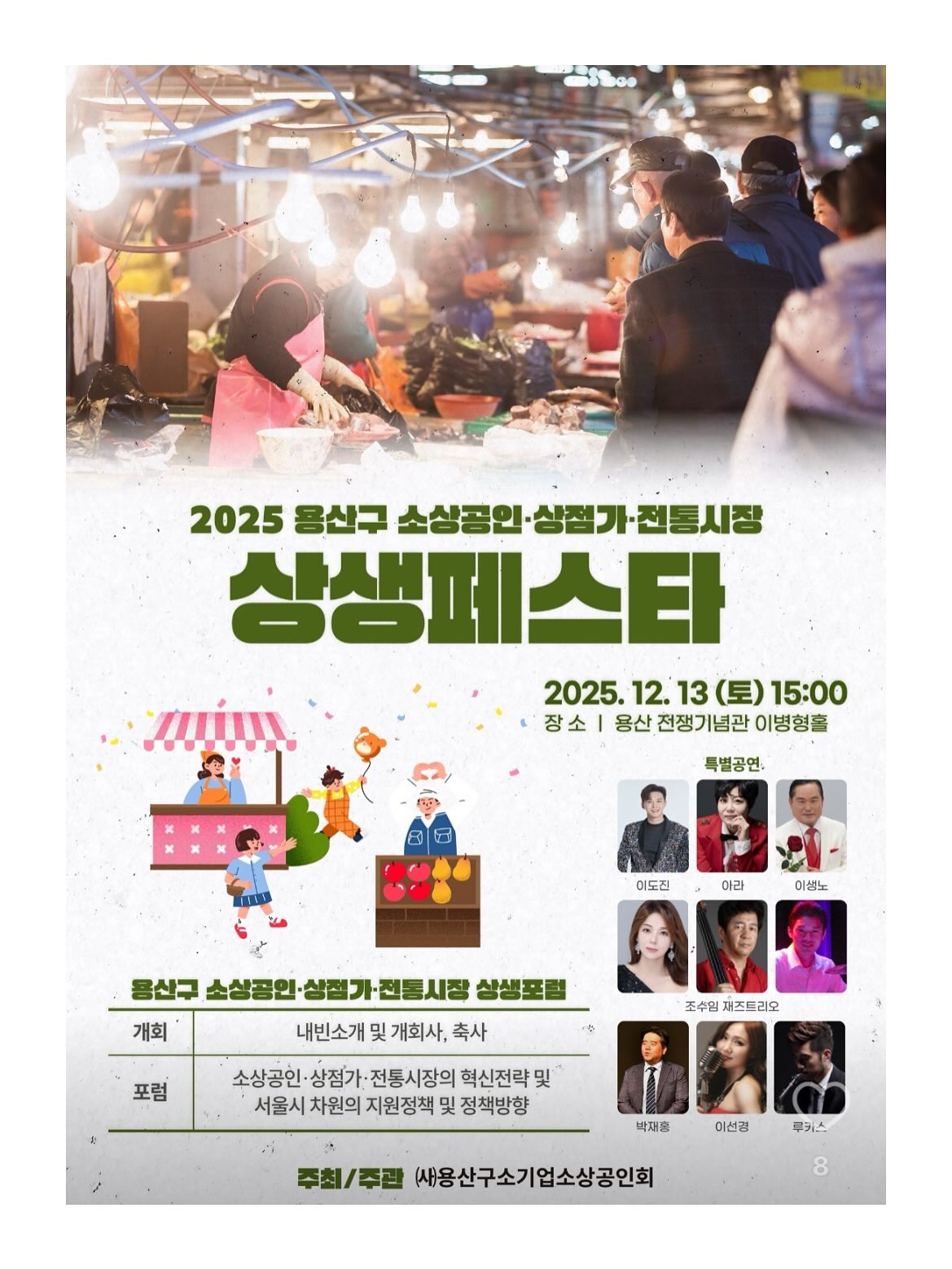 2025년 용산구에서 열리는 ‘2025 용산구 소상공인·상점가·전통시장 상생페스타’ 관련 정보는 다음과 같습니다.