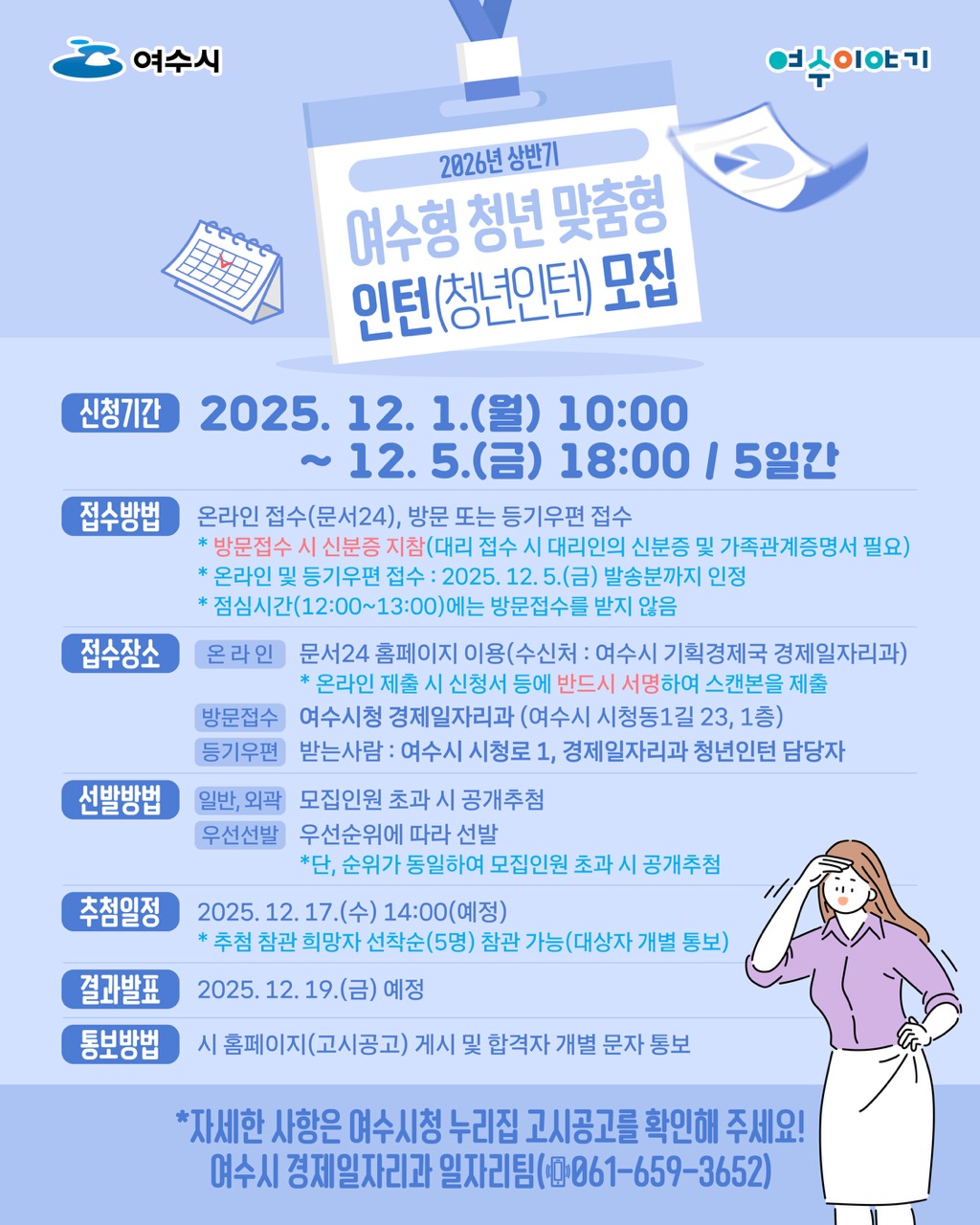 - 여수시 경제일자리과 일자리팀: ☎ 061-659-3623