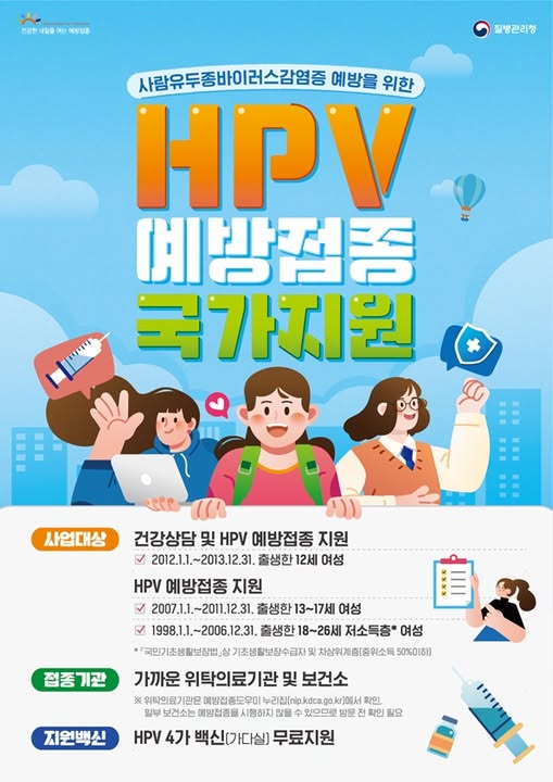 HPV(사람유두종바이러스) 국가예방접종은 자궁경부암 등 HPV 관련 질병 예방을 위해 정부가 지원하는 무료 예방접종 사업입니다. 주요 내용은 아래와 같습니다: