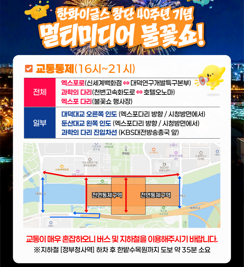 - 교통 통제: 행사 당일 오후 4시 ~ 21시까지 일부 도로, 다리 구간 통제.