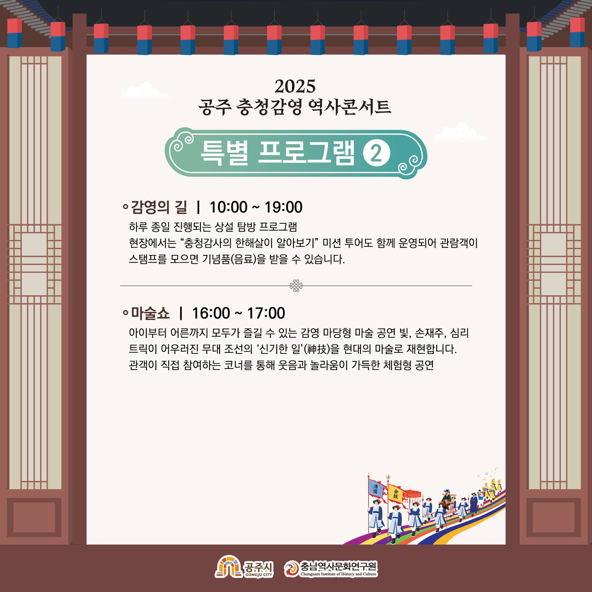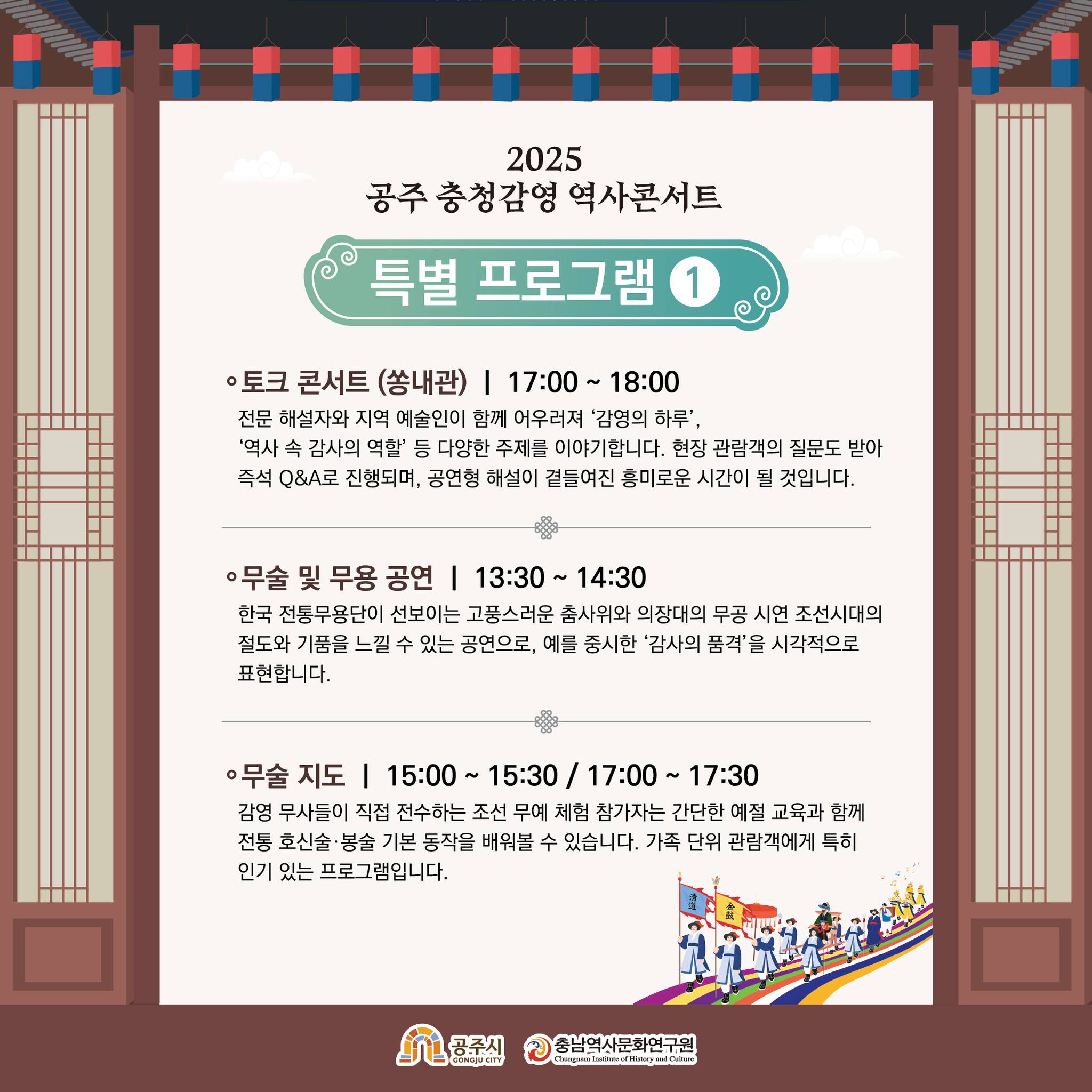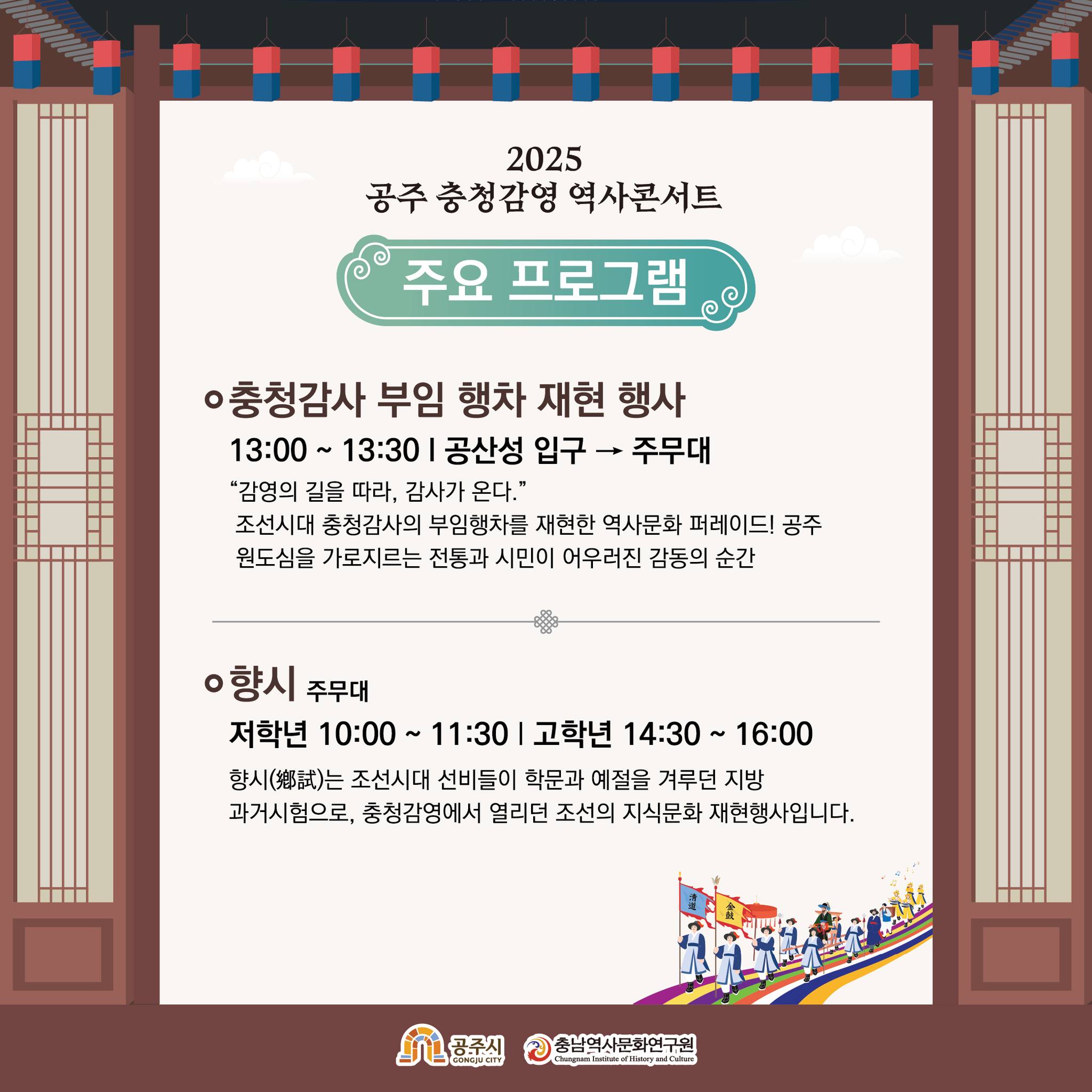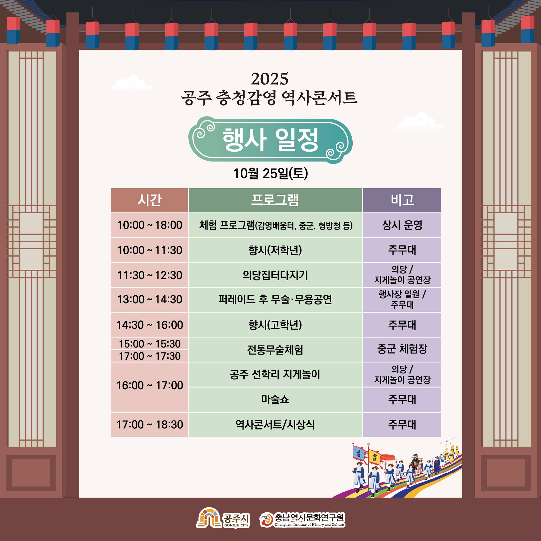 2025년 10월 25일(토), 공주 충청감영에서 열리는 역사콘서트에 대한 구체적인 정보는 현재로서는 확인되지 않습니다