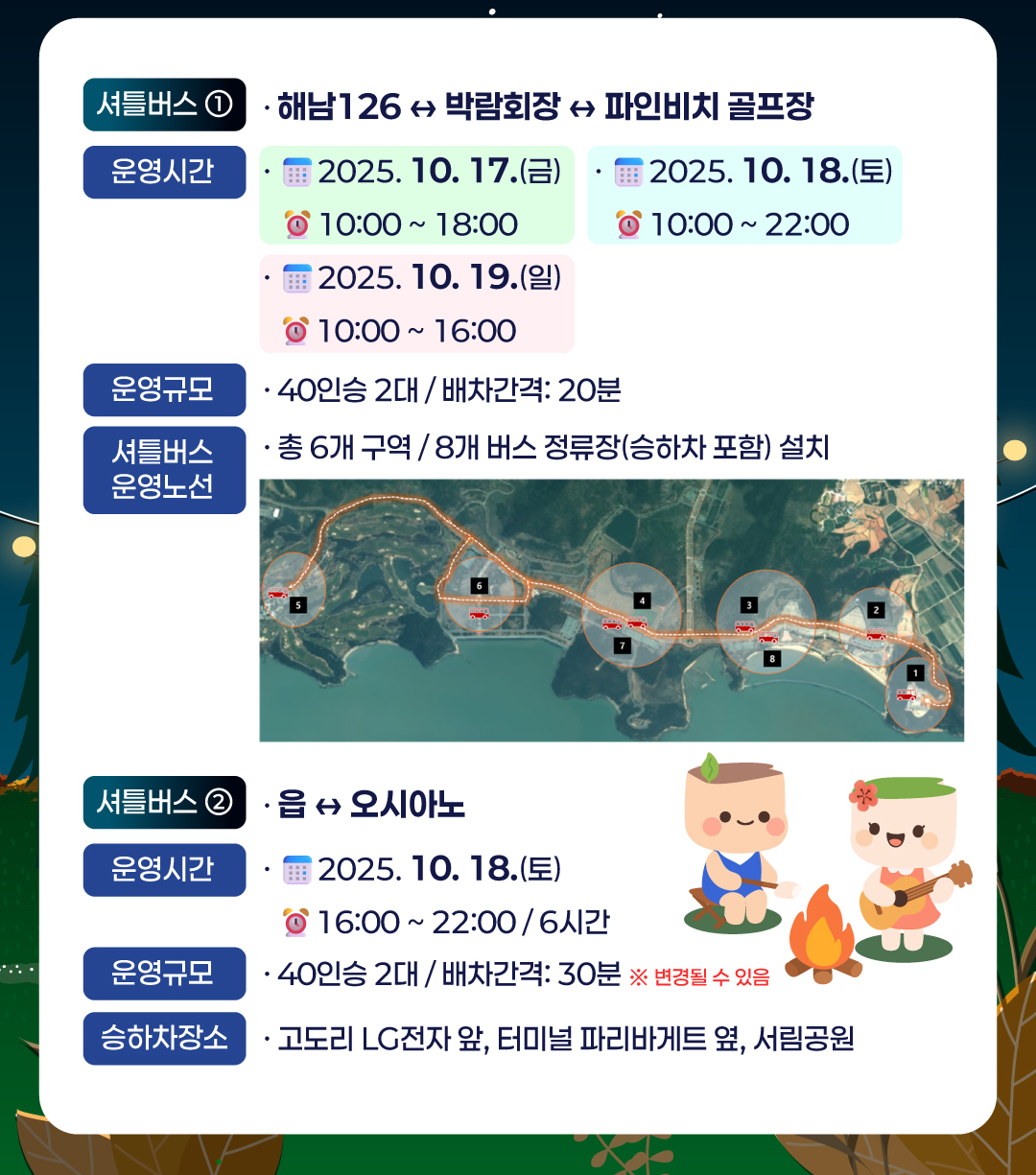 🚌운영규모: 40인승 2대 / 배차간격: 30분 ※ 변경될 수 있음