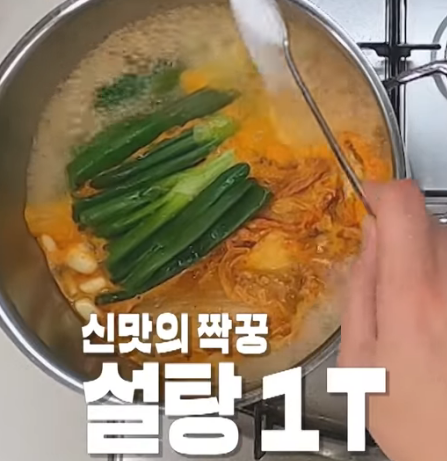 신맛의 짝궁인 설탕 1스푼을 넣어 김치의 신맛을 잡아줍니다.