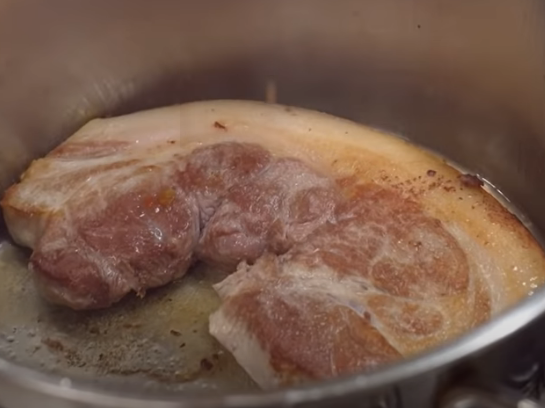 냄비에 기름을 둘러 양쪽면의 고기를 먼저 구워줍니다.