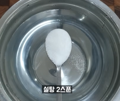 3. 40도 온도 물에 설탕 2스푼을 넣어주세요.