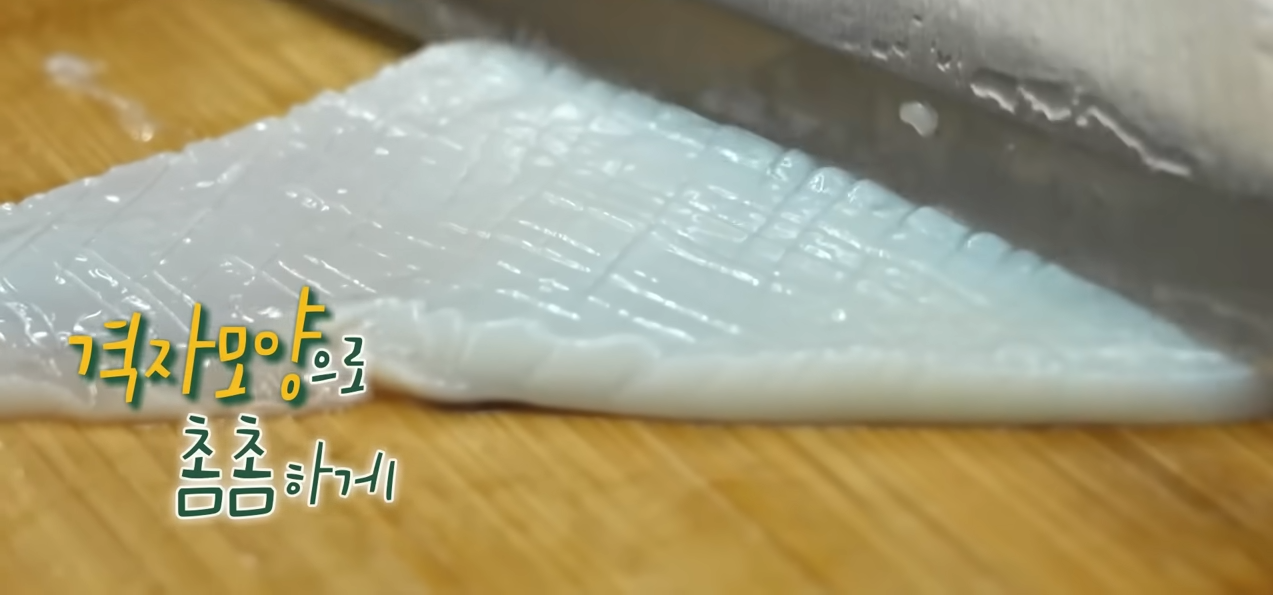 2. 손질된 오징어는 먹기 좋은 사이즈로 잘라줍니다.
