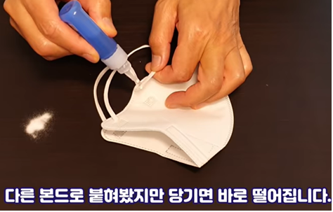 끈은 의외로 쉽게 붙기 때문에 3번 정도만 이 작업을 반복해주면 초강력으로 마스크 끈이 붙습니다.
