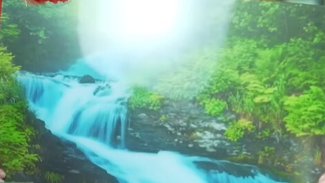 사진의 액자에는 푸른, 녹색이 많은 배경에 폭포를 볼 수 있는데요.