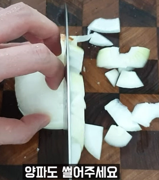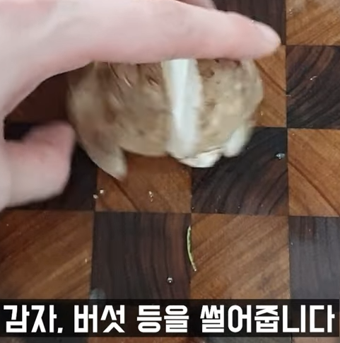 4. 양파, 애호박, 감자, 두부, 버섯 등 된장찌개에 들어가는 재료들을 모두 썰어줍니다.