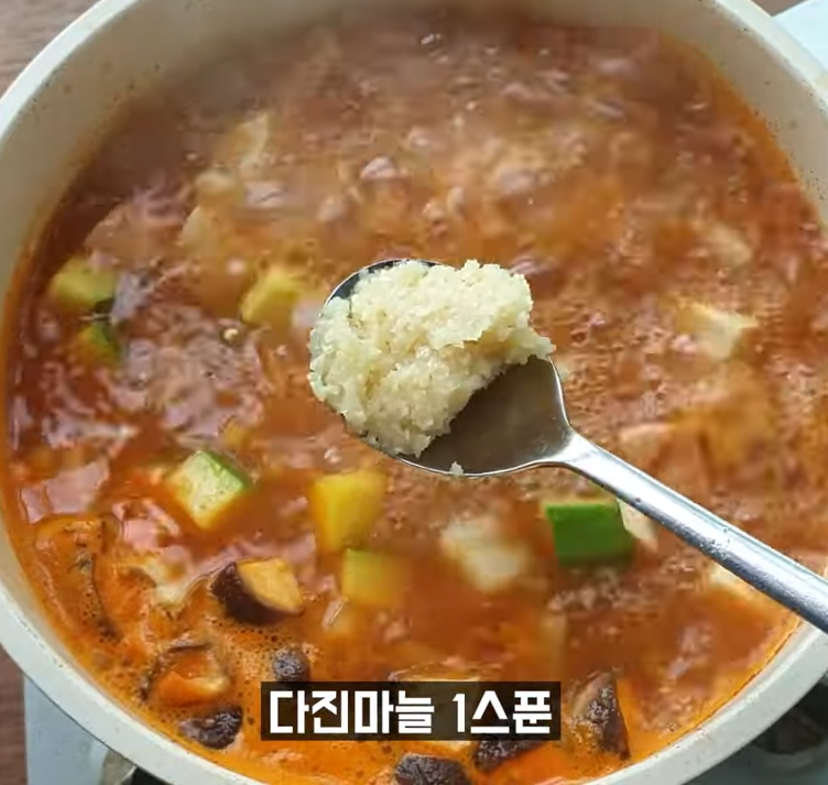 9. 끓으면 다진마늘 1큰술을 넣어줍니다.