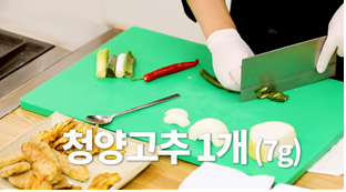 3. 청양고추, 홍고추는 줄기를 제거하고 어슷하게 썰어준다.