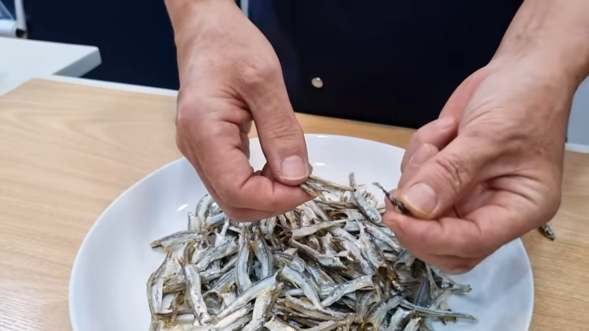 손질된 멸치는 간단하게 전자레인지에 30초 돌려주세요.