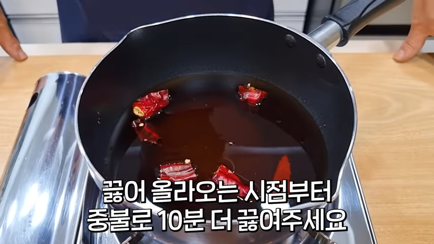 간장물은 꿇어 오르는 시점부터 중불로 10분 더 끓여줍니다.