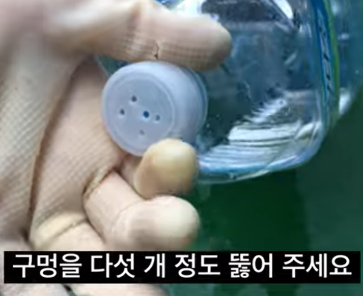 뚜껑에 송곳으로 구멍을 5개정도 내줍니다