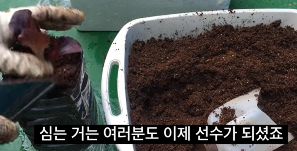 나중에 모종을 심고 물을 주면 물이 잘 흡수하지 않아서 미리 흙에 물을 부어 섞어주는 것이 좋습니다.