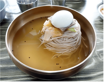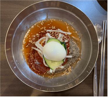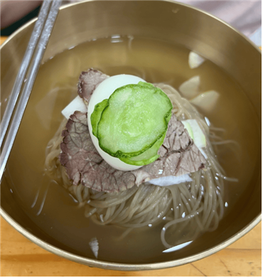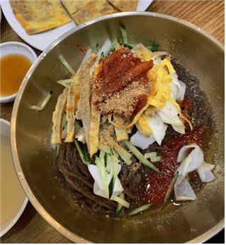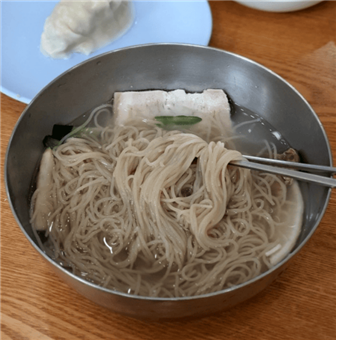육수 느낌이 강하다고 하며 깊은 맛이 나는 냉면이고 메밀면이 안질겨서 아이들 먹기에도 좋다고 합니다.