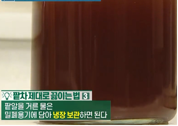 3. 팥알을 거른 물은 밀폐용기에 담아 냉장 보관합니다.